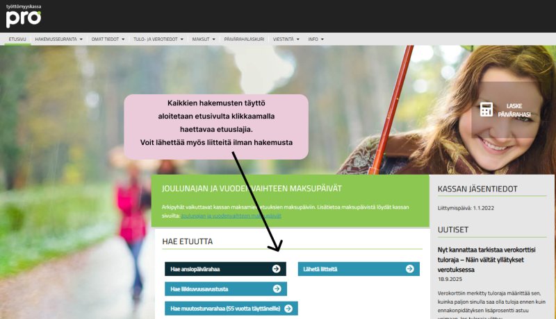 Huomioi, että ansiopäivärahaa ei voi hakea etukäteen ja sitä on haettava 3 kuukauden kuluessa siitä päivästä, josta haluat ansiopäivärahaa maksettavan.
